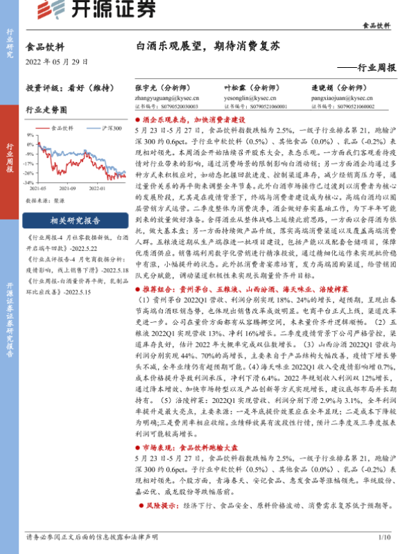 【开源证券】【20220529】20220529-开源证券-食品饮料行业周报:白酒乐观展望,期待消费复苏-10页