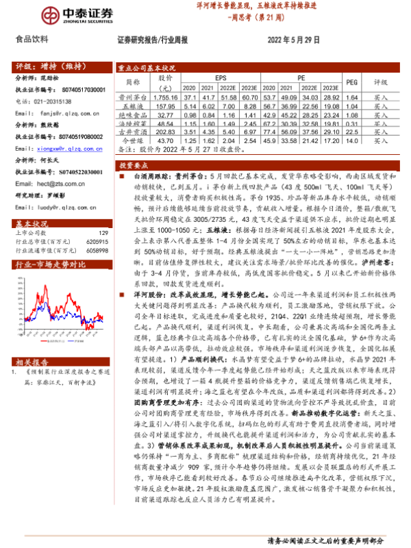 【中泰证券】【20220529】20220529-中泰证券-食品饮料周思考(第21周):洋河增长势能显现,五粮液改革持续推进-9页