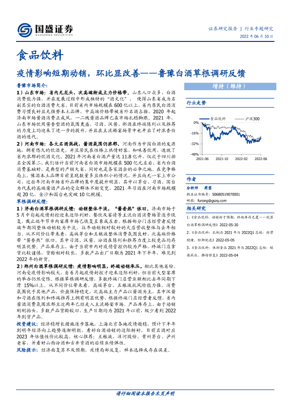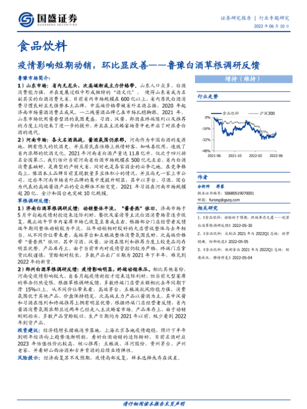 【国盛证券】【20220610】食品饮料行业专题研究:鲁豫白酒草根调研反馈-疫情影响短期动销,环比显改善-9页