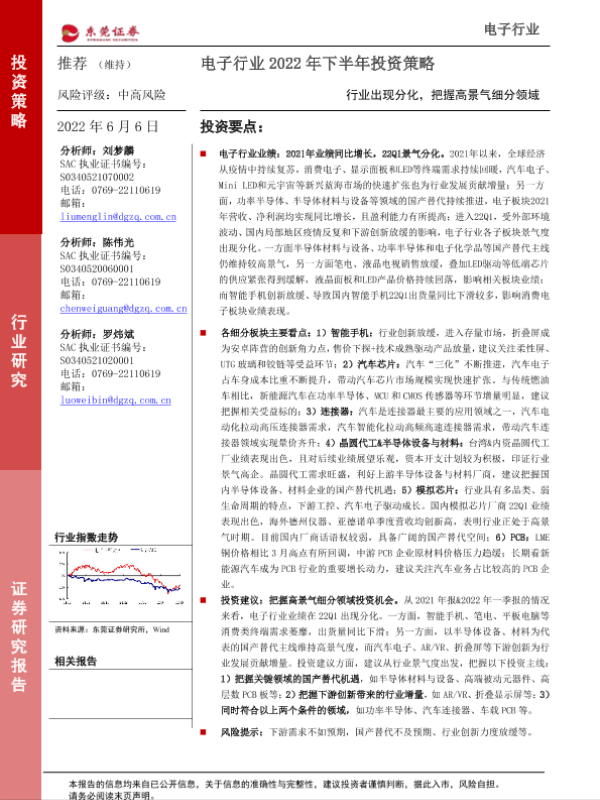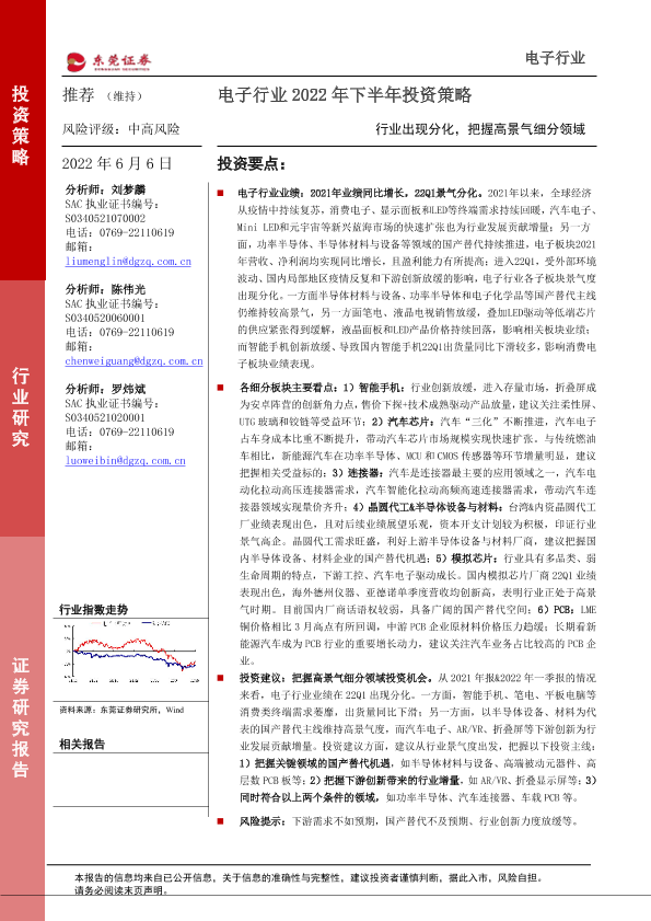 【东莞证券】【20220606】电子行业2022年下半年投资策略:行业出现分化,把握高景气细分领域-44页