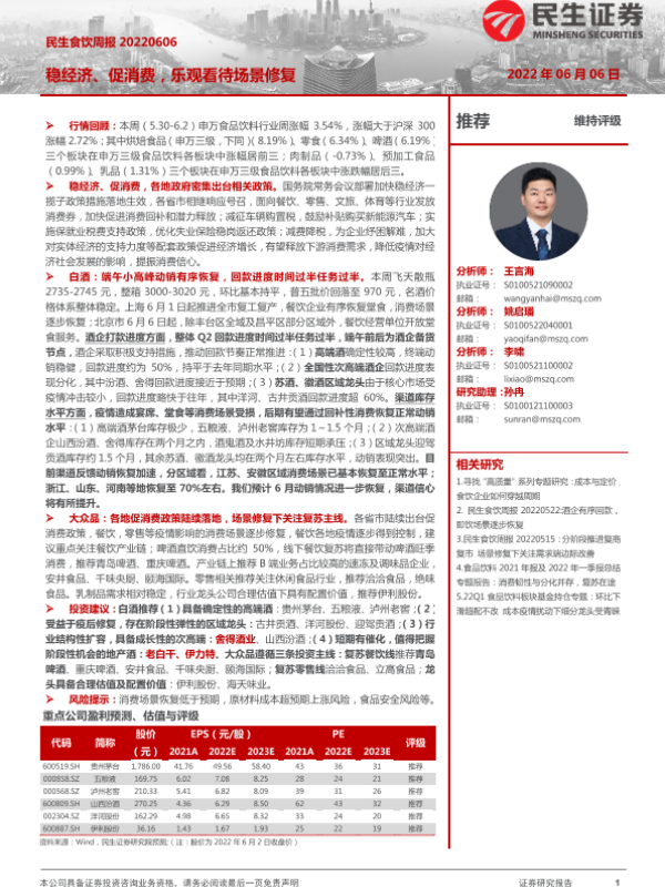 【民生证券】【20220606】民生食饮周报:稳经济、促消费,乐观看待场景修复-15页
