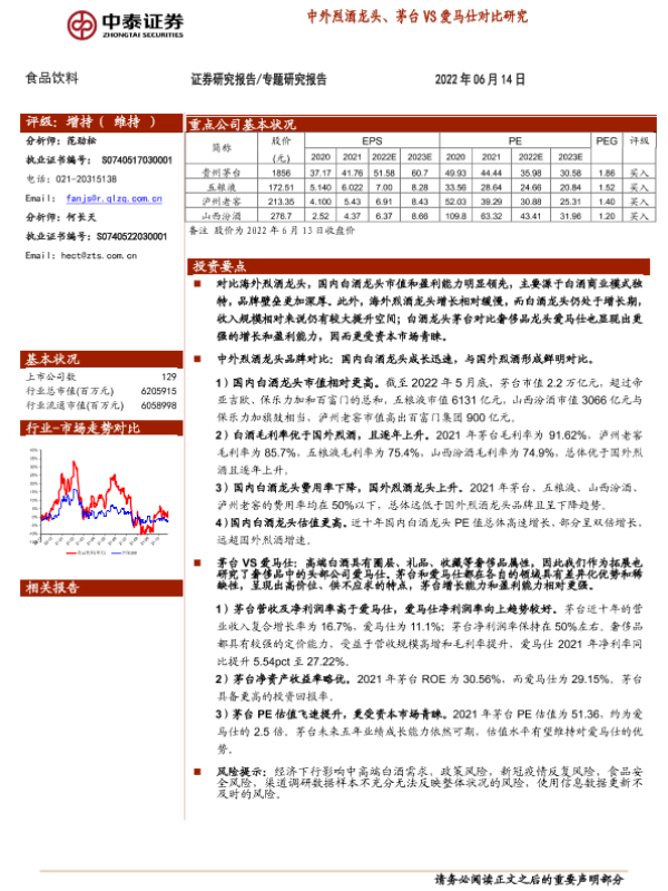 【中泰证券】【20220614】食品饮料专题研究报告:中外烈酒龙头、茅台VS爱马仕对比研究-10页