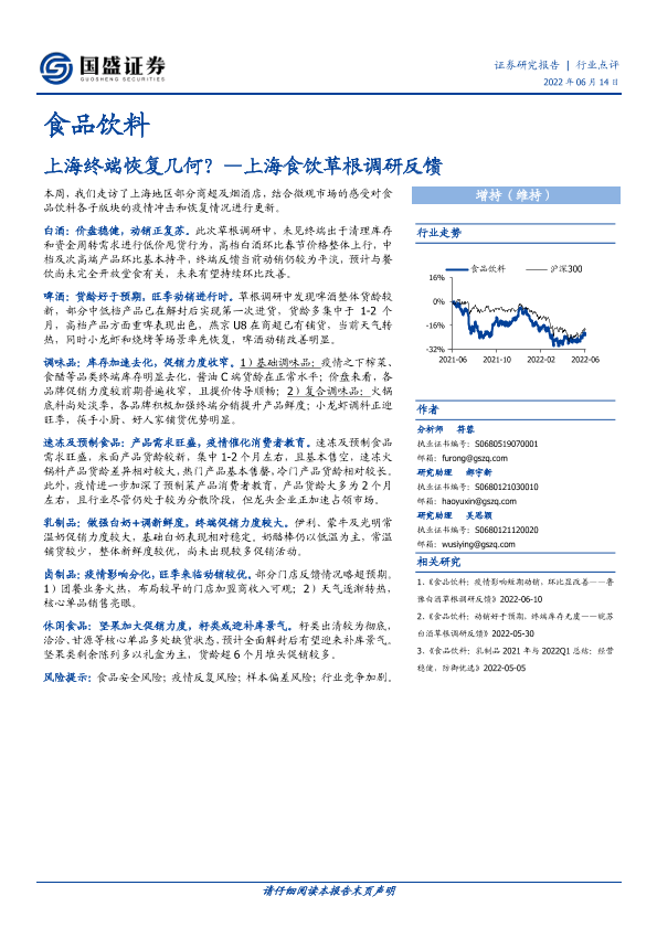 【国盛证券】【20220614】上海食饮草根调研反馈:上海终端恢复几何?-16页