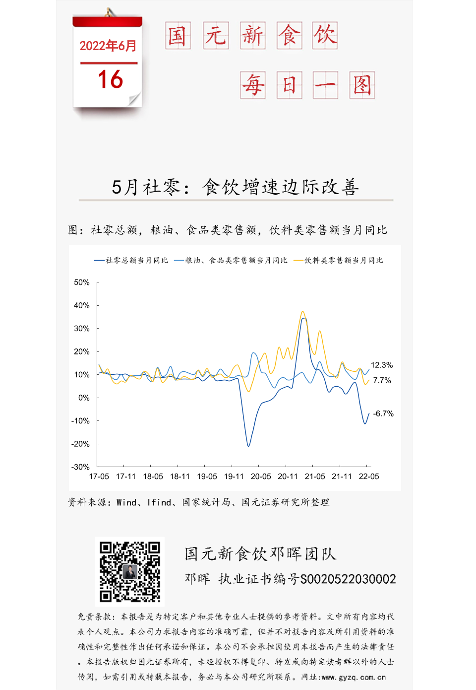 【国元证券】【20220616】国元新食饮每日一图:5月社零:食饮增速边际改善-1页