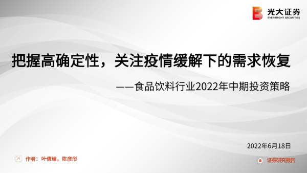 【光大证券】【20220618】食品饮料行业2022年中期投资策略:把握高确定性,关注疫情缓解下的需求恢复-56页