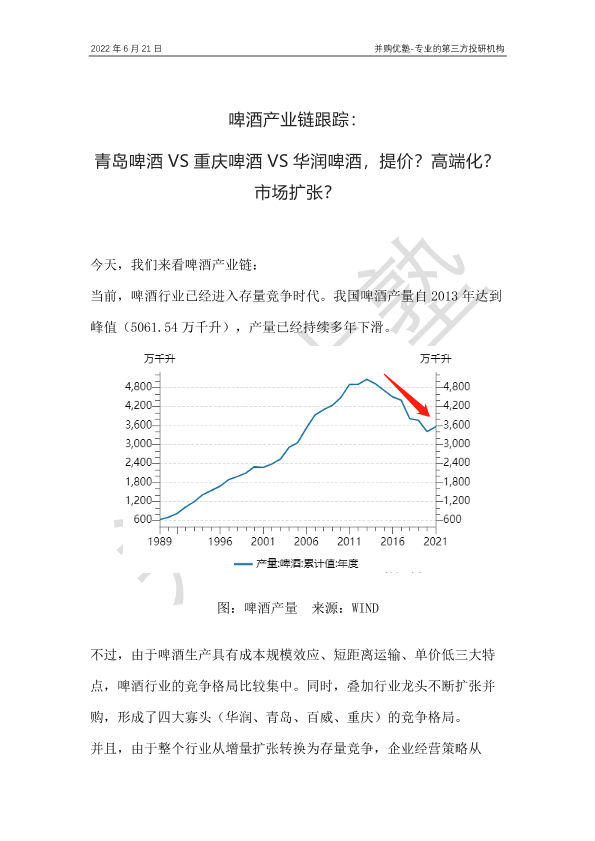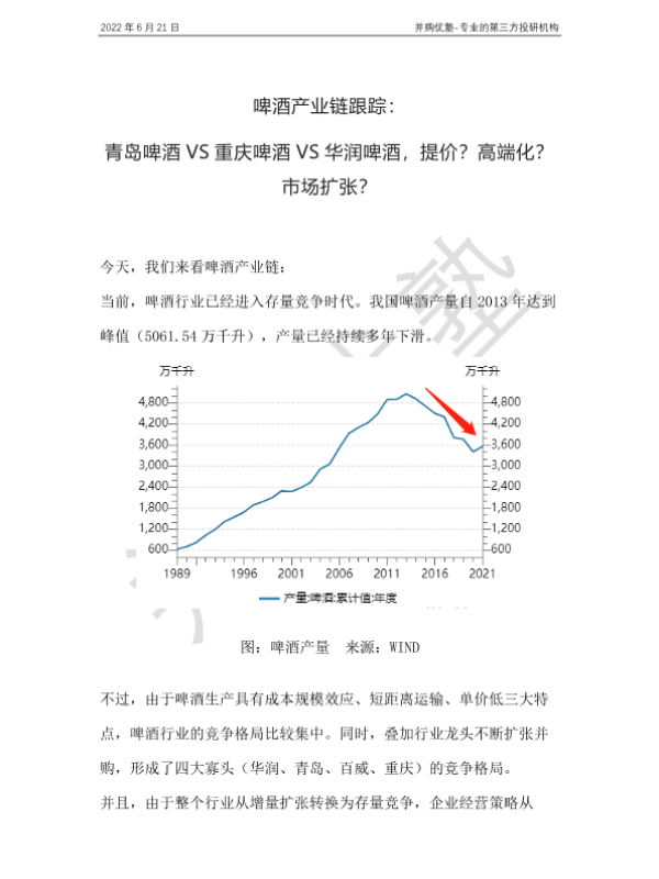 【并购优塾】【20220621】啤酒产业链跟踪:青岛啤酒VS重庆啤酒VS华润啤酒,提价?高端化?市场扩张?-24页