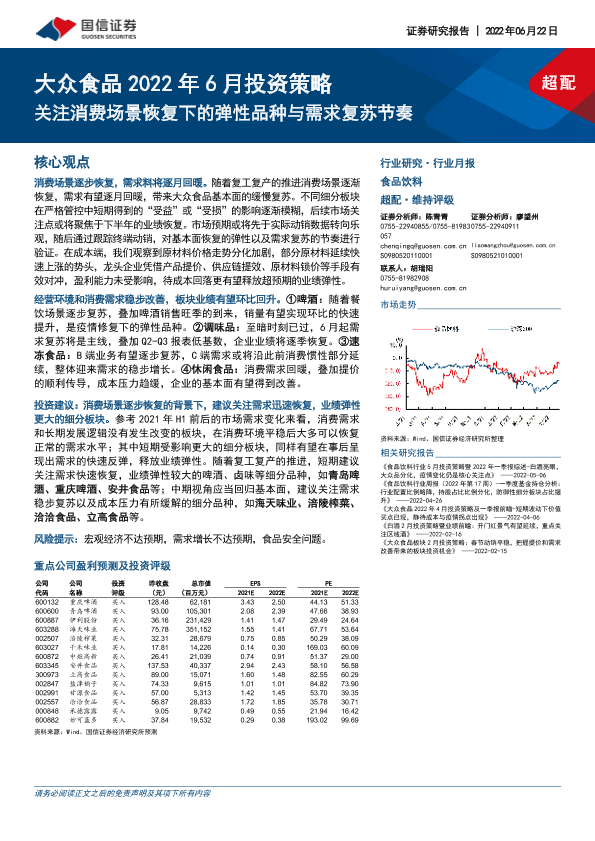 【国信证券】【20220622】大众食品2022年6月投资策略:关注消费场景恢复下的弹性品种与需求复苏节奏-15页