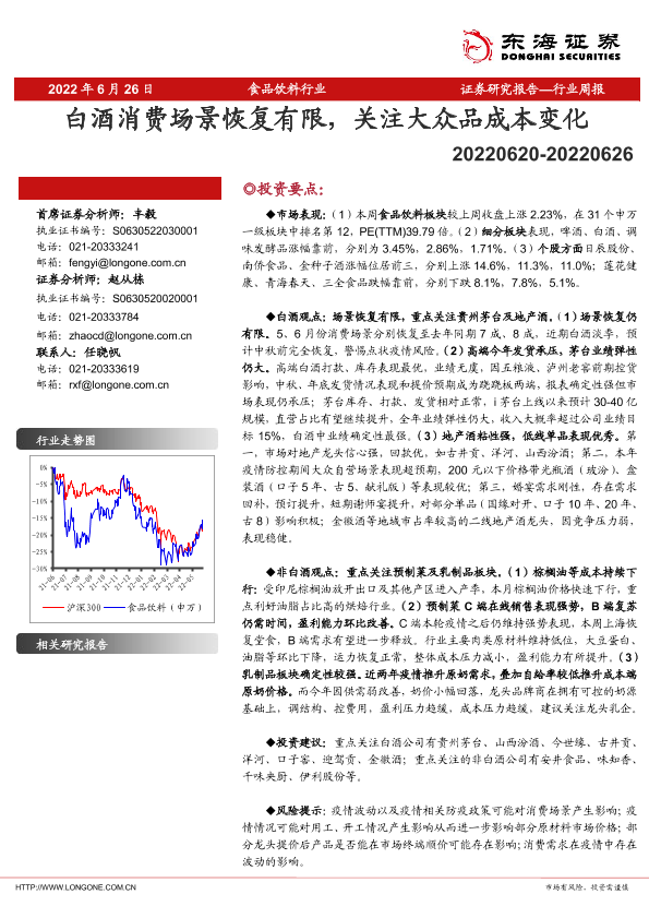 【东海证券】【20220626】20220626-东海证券-食品饮料行业周报:白酒消费场景恢复有限,关注大众品成本变化-16页