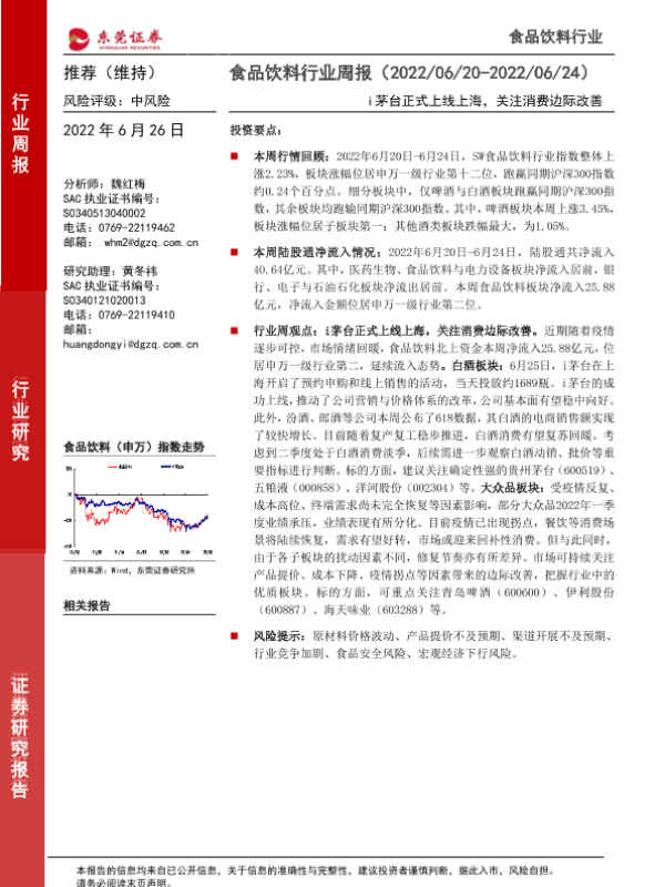 【东莞证券】【20220626】食品饮料行业周报:i茅台正式上线上海,关注消费边际改善-14页