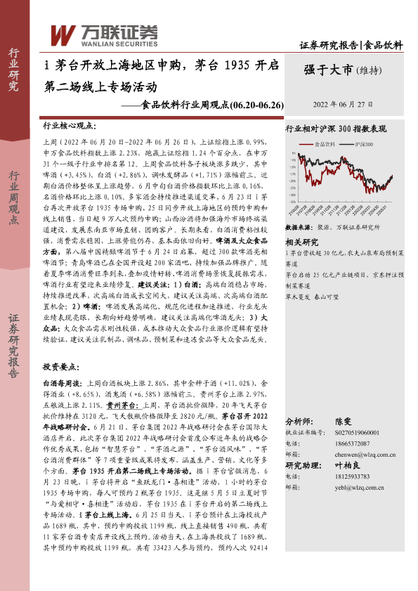 【万联证券】【20220627】20220627-万联证券-食品饮料行业周观点:i茅台开放上海地区申购,茅台1935开启第二场线上专场活动-12页