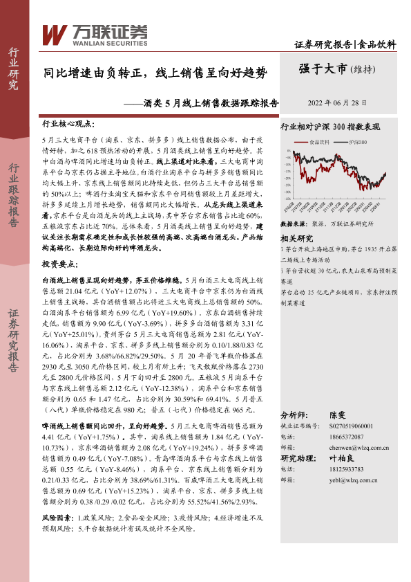 【万联证券】【20220628】同比增速由负转正,线上销售呈向好趋势-10页