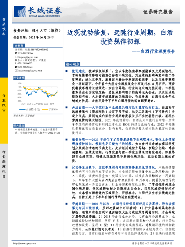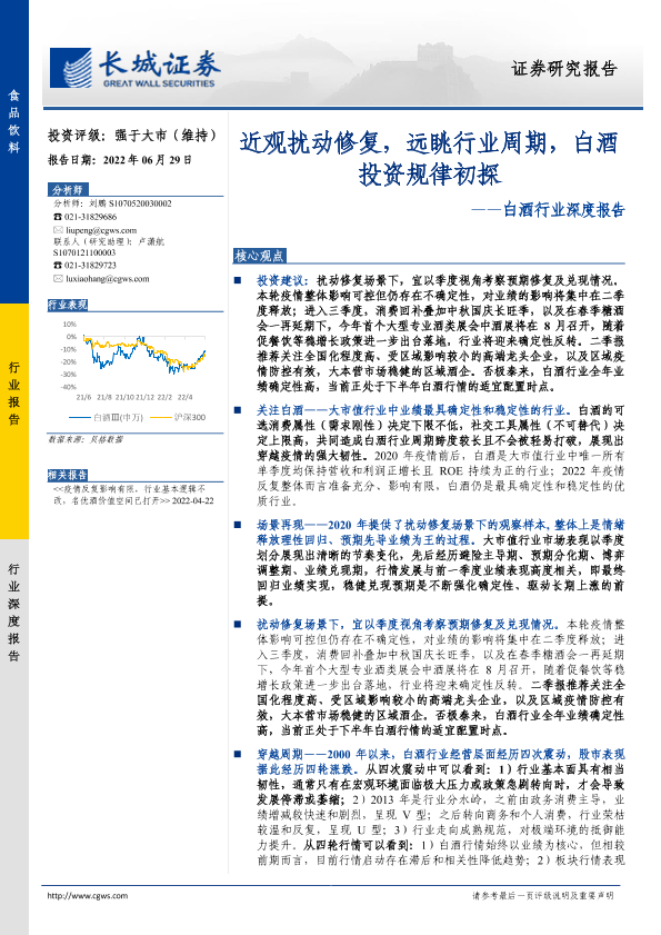 【长城证券】【20220629】20220629-长城证券-白酒行业深度报告:近观扰动修复,远眺行业周期,白酒投资规律初探-34页