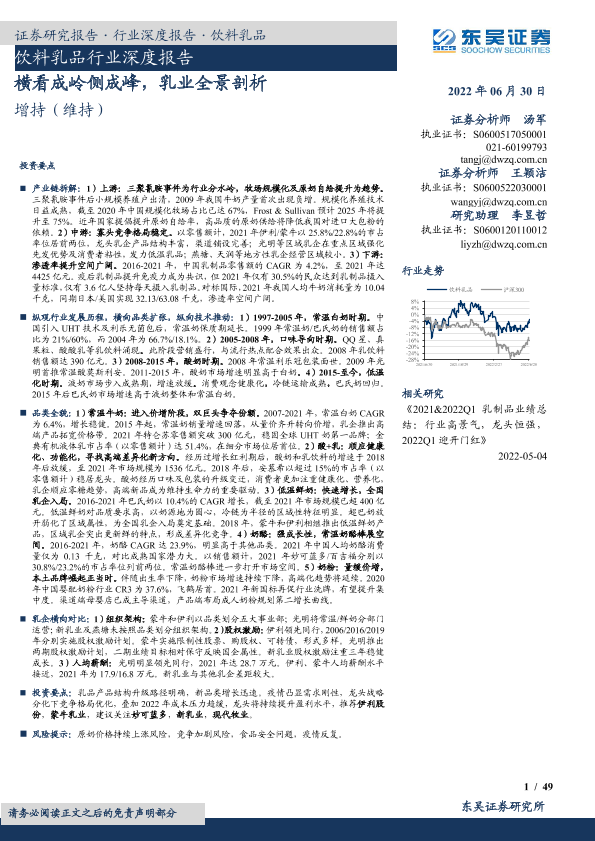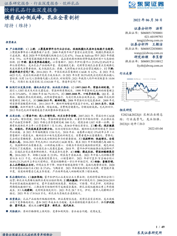 【东吴证券】【20220630】饮料乳品行业深度报告:横看成岭侧成峰,乳业全景剖析-49页