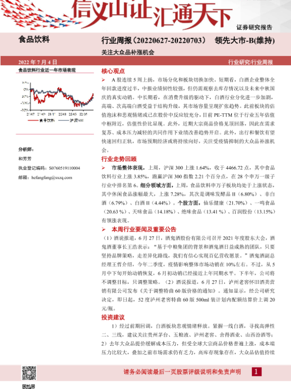 【山西证券】【20220704】食品饮料行业周报:关注大众品补涨机会-12页
