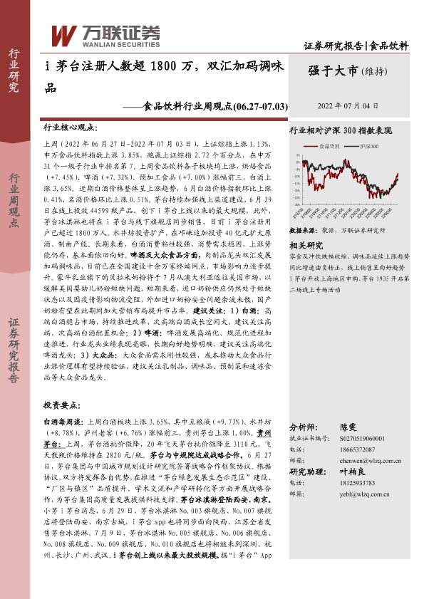 【万联证券】【20220704】20220704-万联证券-食品饮料行业周观点:i茅台注册人数超1800万,双汇加码调味品-12页
