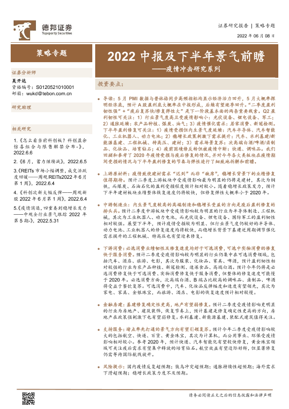 【德邦证券】【20220608】疫情冲击研究系列:2022中报及下半年景气前瞻-35页