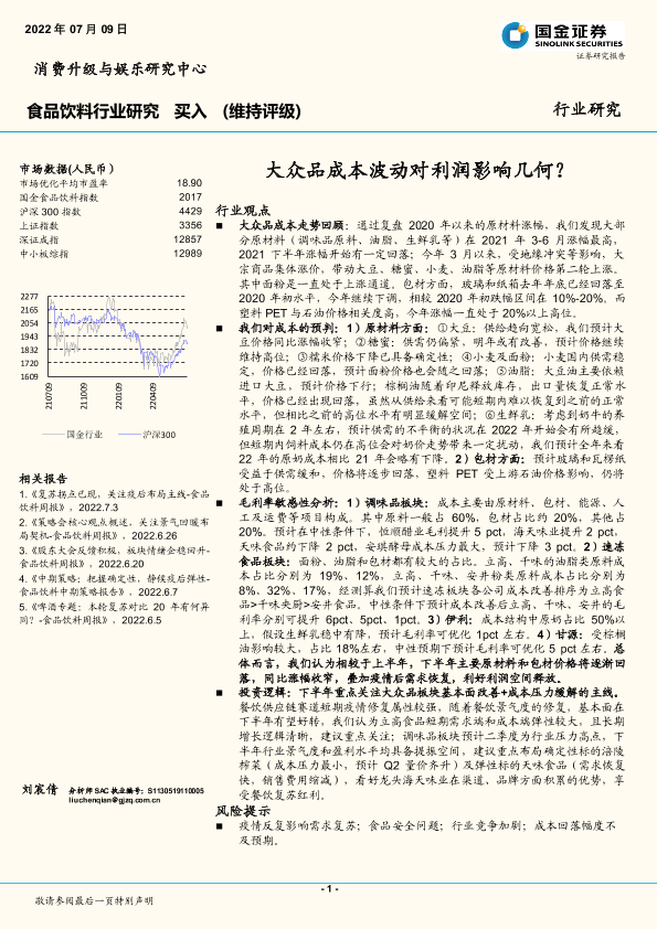 【国金证券】【20220709】20220709-国金证券-食品饮料行业研究:大众品成本波动对利润影响几何?-22页