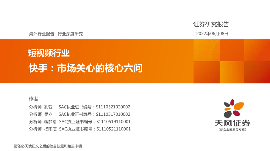 【天风证券】【20220608】短视频行业:快手,市场关心的核心六问-62页