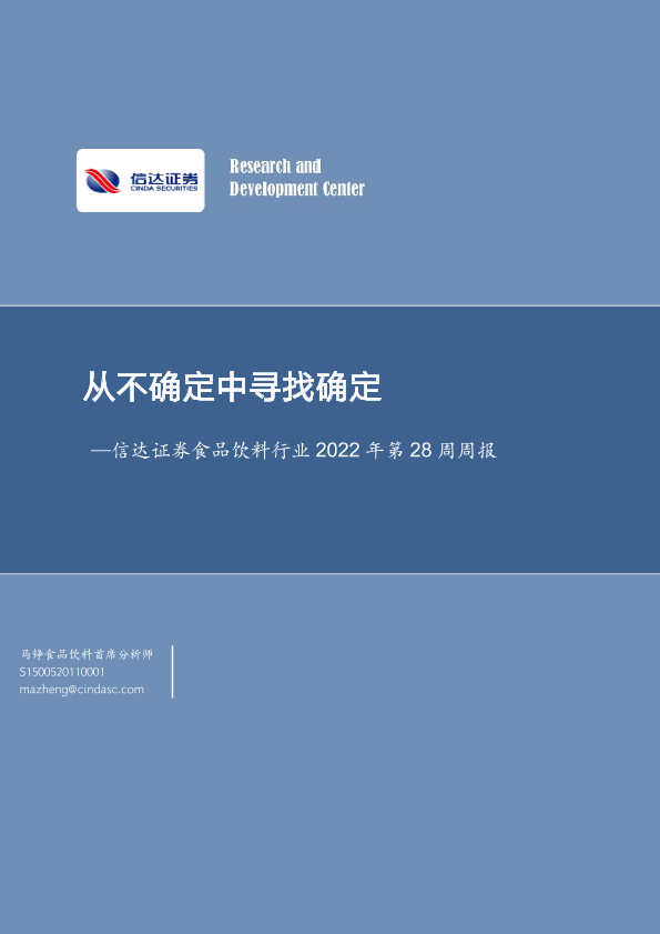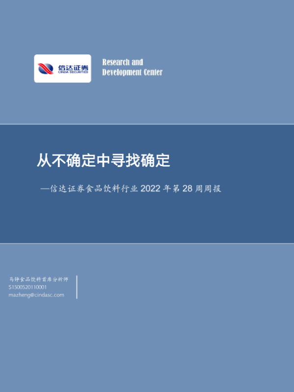 【信达证券】【20220710】20220710-信达证券-食品饮料行业2022年第28周周报:从不确定中寻找确定-17页