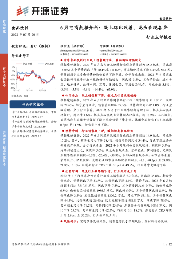 【开源证券】【20220720】6月电商数据分析:线上环比改善,龙头表现各异-12页