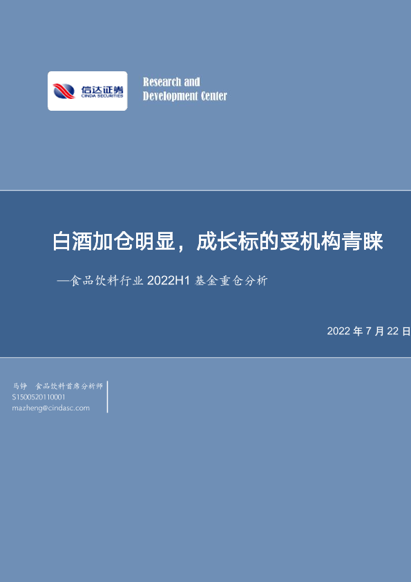 【信达证券】【20220722】20220722-信达证券-食品饮料行业2022H1基金重仓分析:白酒加仓明显,成长标的受机构青睐-9页
