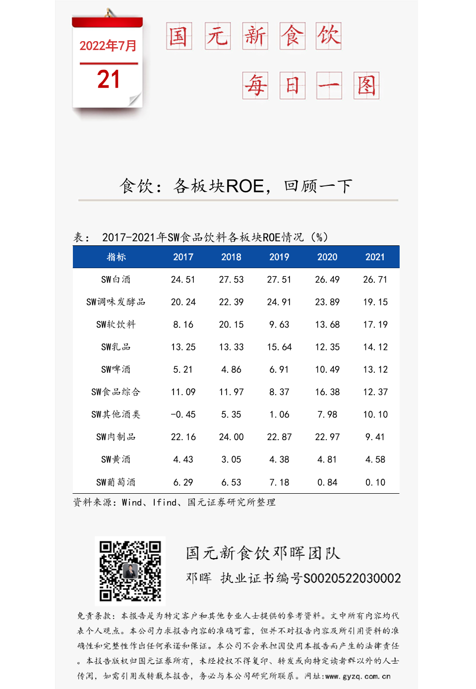 【国元证券】【20220721】食饮:各板块ROE,回顾一下-1页