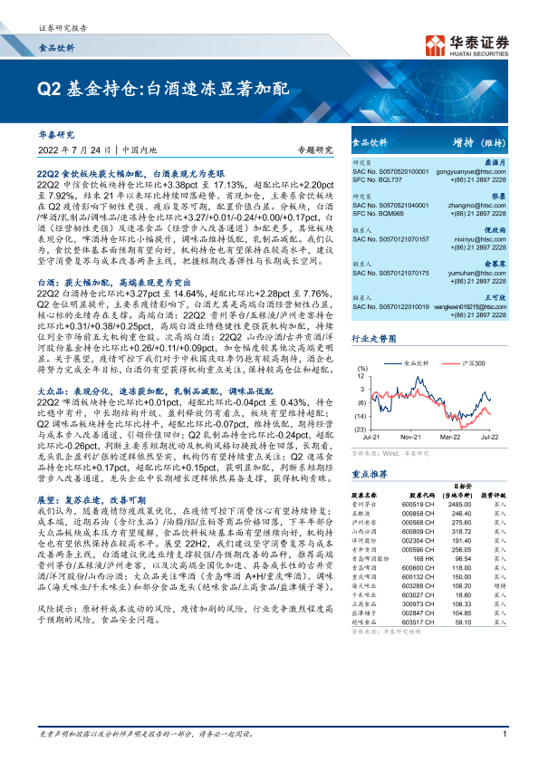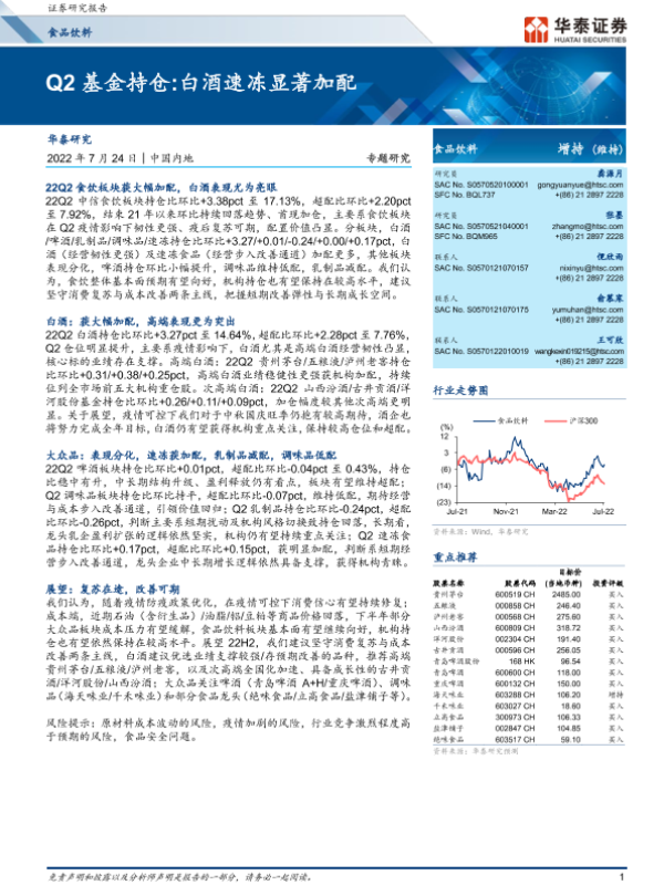 【华泰证券】【20220724】20220724-华泰证券-食品饮料专题研究:Q2基金持仓 白酒速冻显著加配-14页