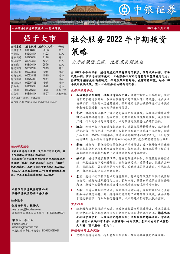 【中银证券】【20220607】社会服务行业2022年中期投资策略:云开疫散曙光现,优质龙头踏浪起-43页