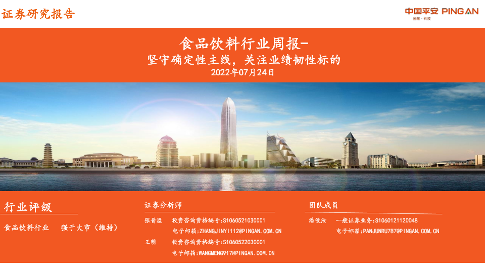 【平安证券】【20220724】20220724-平安证券-食品饮料行业周报:坚守确定性主线,关注业绩韧性标的-14页