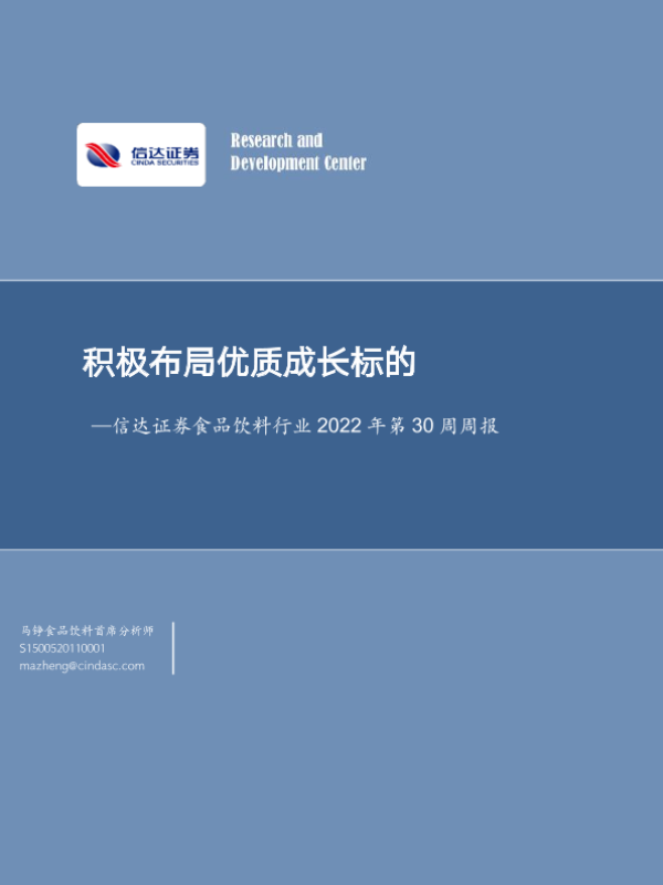 【信达证券】【20220724】20220724-信达证券-食品饮料行业2022年第30周周报:积极布局优质成长标的-18页