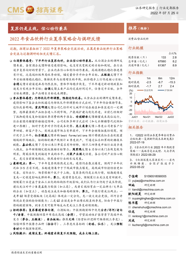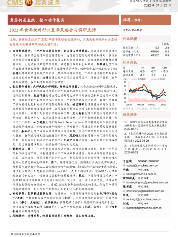 【海通证券】【20220725】2022年食品饮料行业夏季策略会与调研反馈-9页