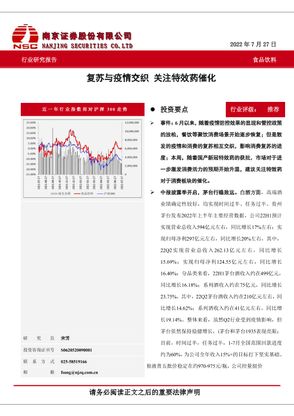 【南京证券】【20220727】食品饮料:复苏与疫情交织 关注特效药催化-4页
