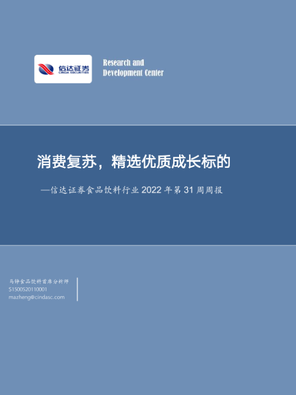 【信达证券】【20220731】20220731-信达证券-食品饮料行业2022年第31周周报:消费复苏,精选优质成长标的-18页