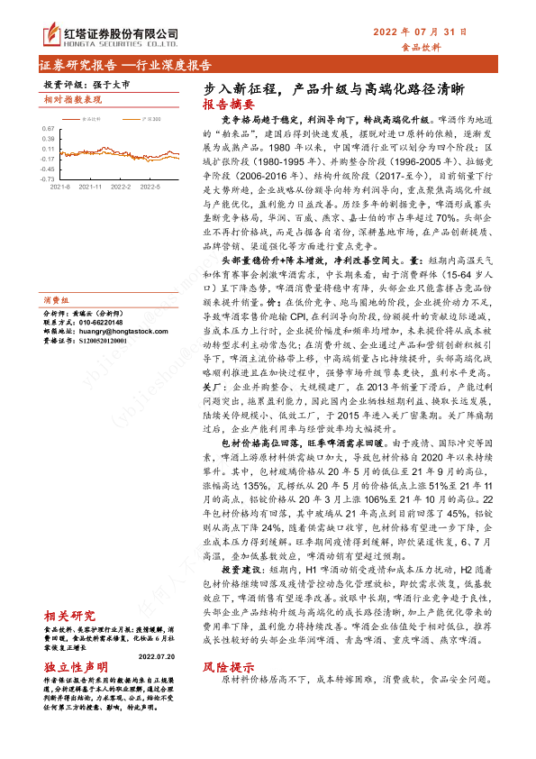 产品升级 啤酒行业 市场竞争 盈利能力 高端化