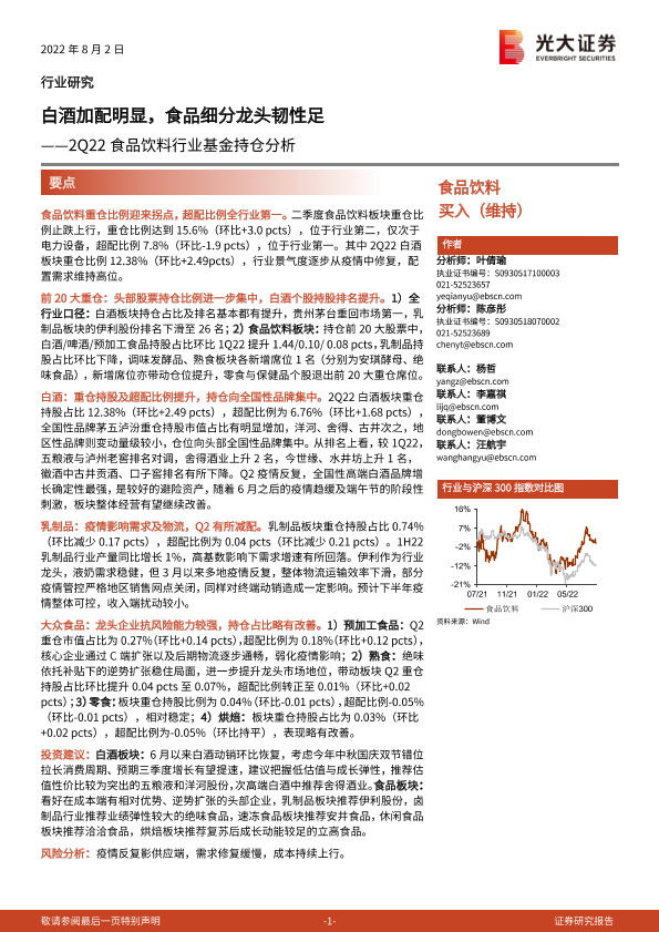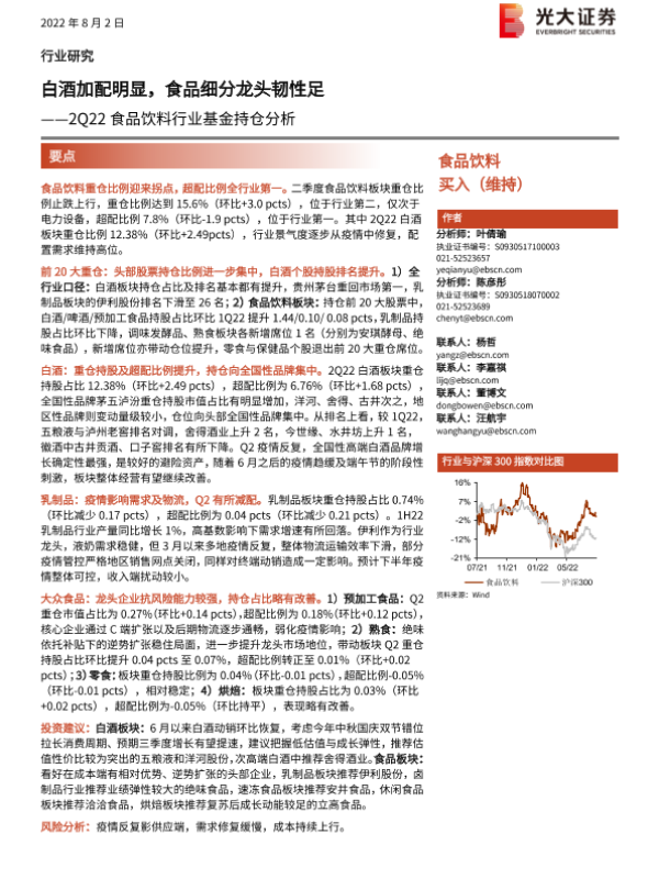 【光大证券】【20220802】2Q22食品饮料行业基金持仓分析:白酒加配明显,食品细分龙头韧性足-14页