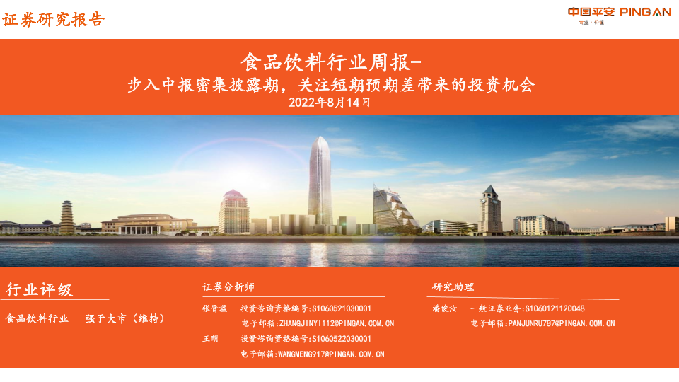 【平安证券】【20220814】20220814-平安证券-食品饮料行业周报:步入中报密集披露期,关注短期预期差带来的投资机会-14页