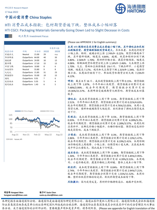 【海通国际】【20220817】HTI消费品成本指数:包材期货普遍下跌,整体成本小幅回落-16页