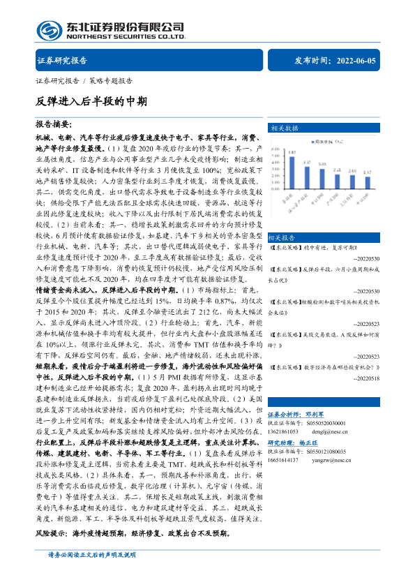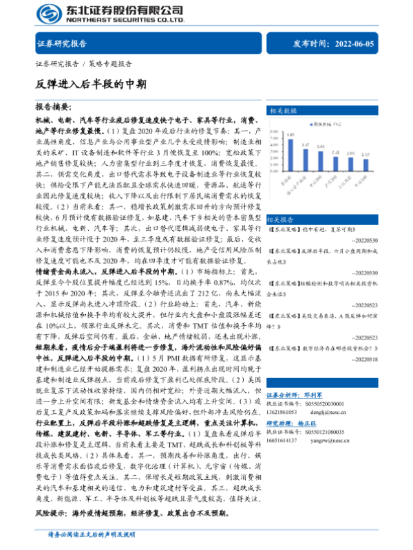 【东北证券】【20220605】策略专题报告:反弹进入后半段的中期-27页