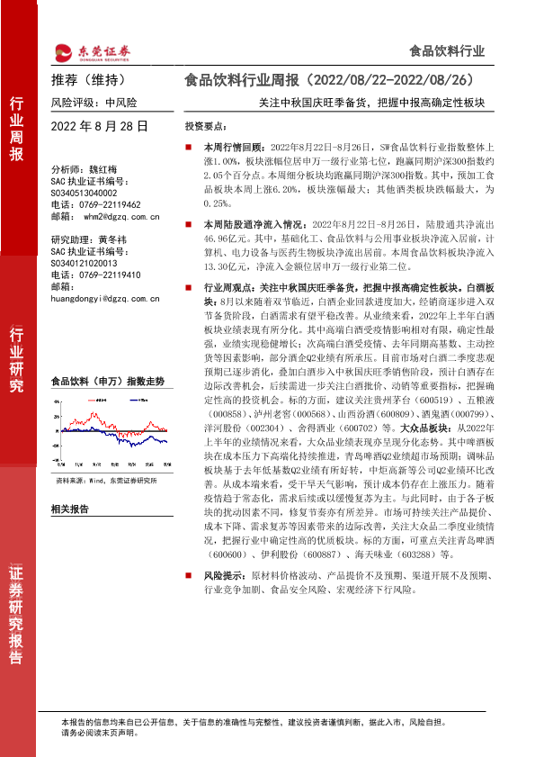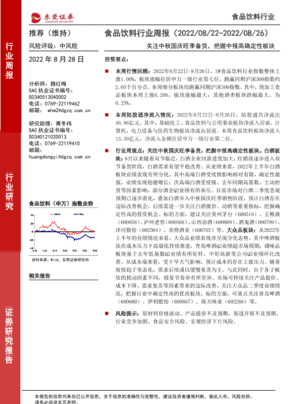【东莞证券】【20220828】20220828-东莞证券-食品饮料行业周报:关注中秋国庆旺季备货,把握中报高确定性板块-16页