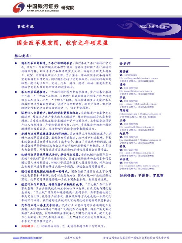 【银河证券】【20220607】策略专题:国企改革展宏图,收官之年硕果盈-48页