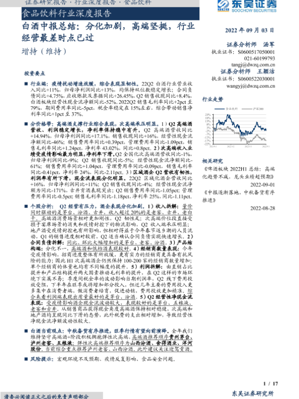 【东吴证券】【20220903】白酒中报总结:分化加剧,高端坚挺,行业经营最差时点已过-17页