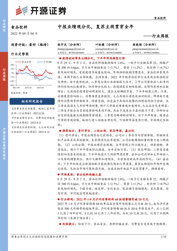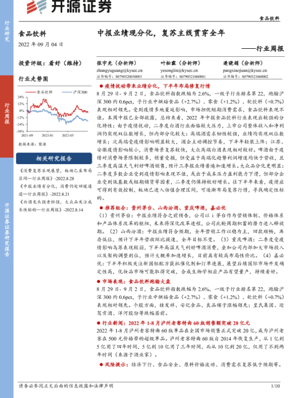 【开源证券】【20220904】食品饮料行业周报:中报业绩现分化,复苏主线贯穿全年-10页