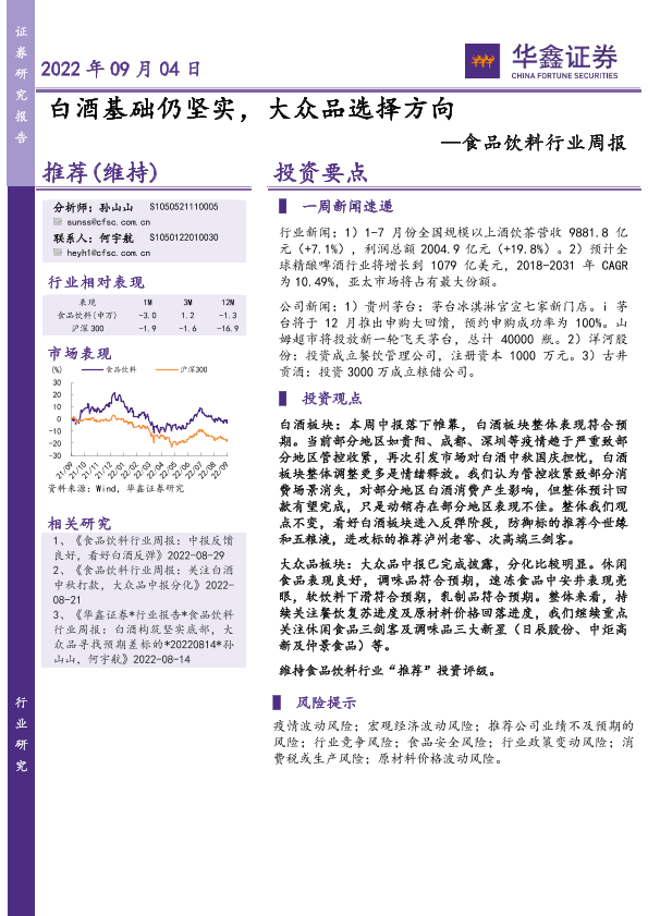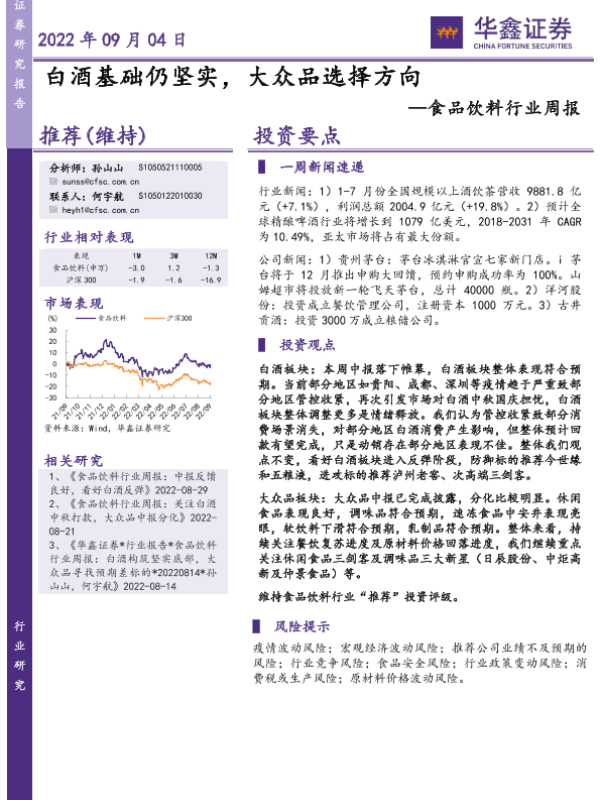 【华鑫证券】【20220904】20220904-华鑫证券-食品饮料行业周报:白酒基础仍坚实,大众品选择方向-25页