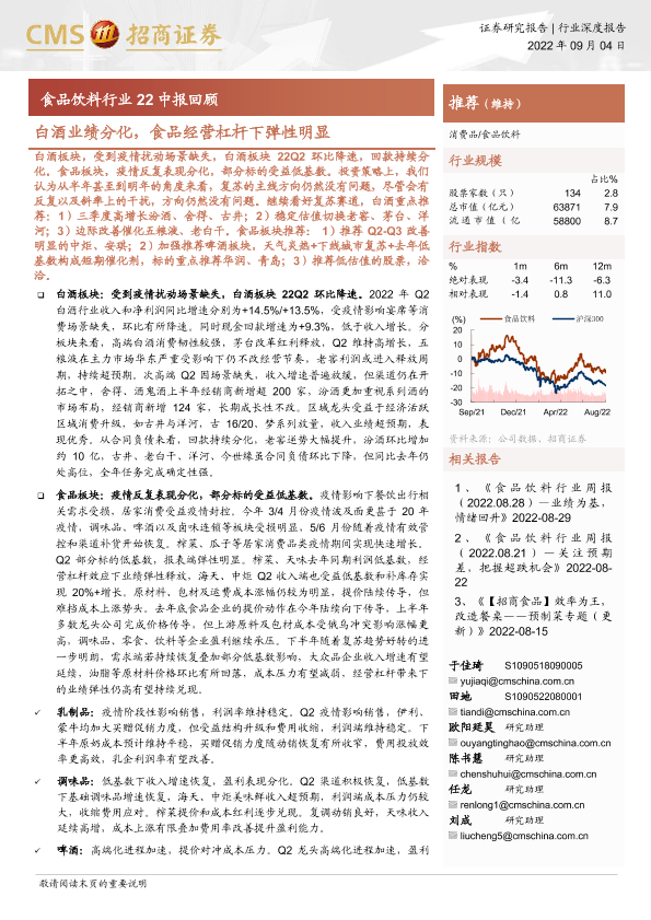 【海通证券】【20220904】食品饮料行业22中报回顾-18页