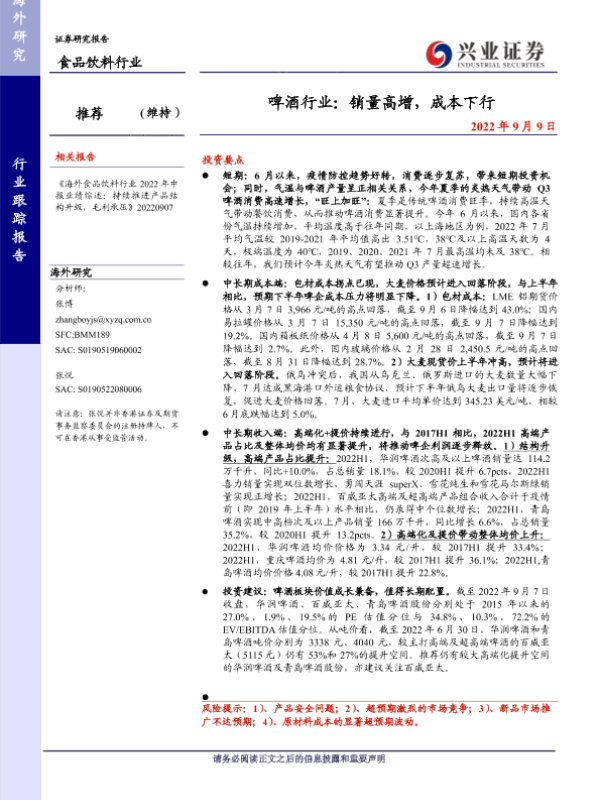 【兴业证券】【20220909】啤酒行业:销量高增,成本下行-28页