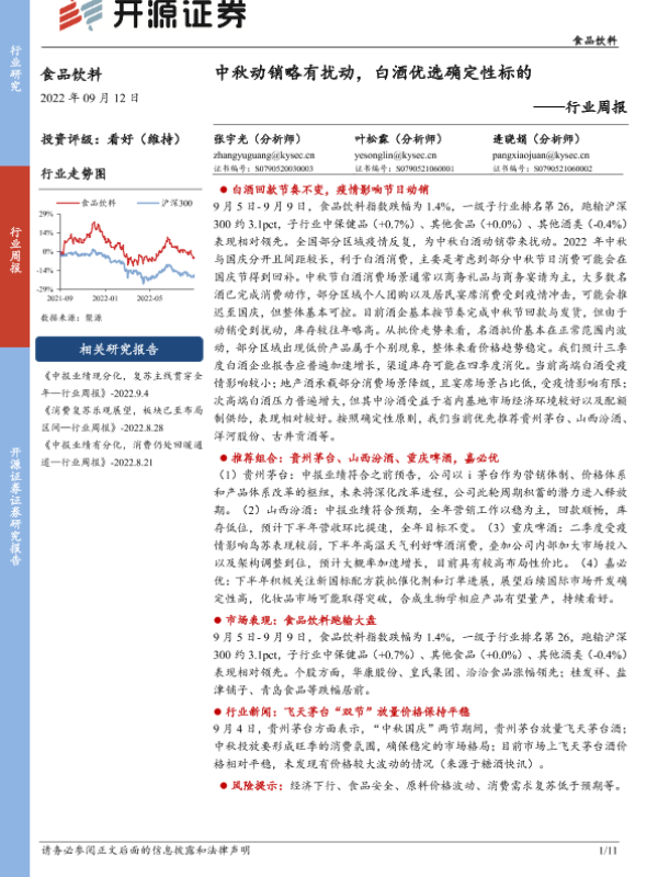 【开源证券】【20220912】食品饮料行业周报:中秋动销略有扰动,白酒优选确定性标的-11页