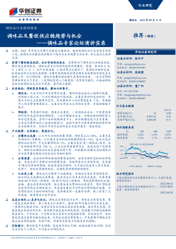 【华创证券】【20220913】调味品行业跟踪报告:调味品及餐饮供应链趋势与机会——调味品专家论坛演讲实录-17页