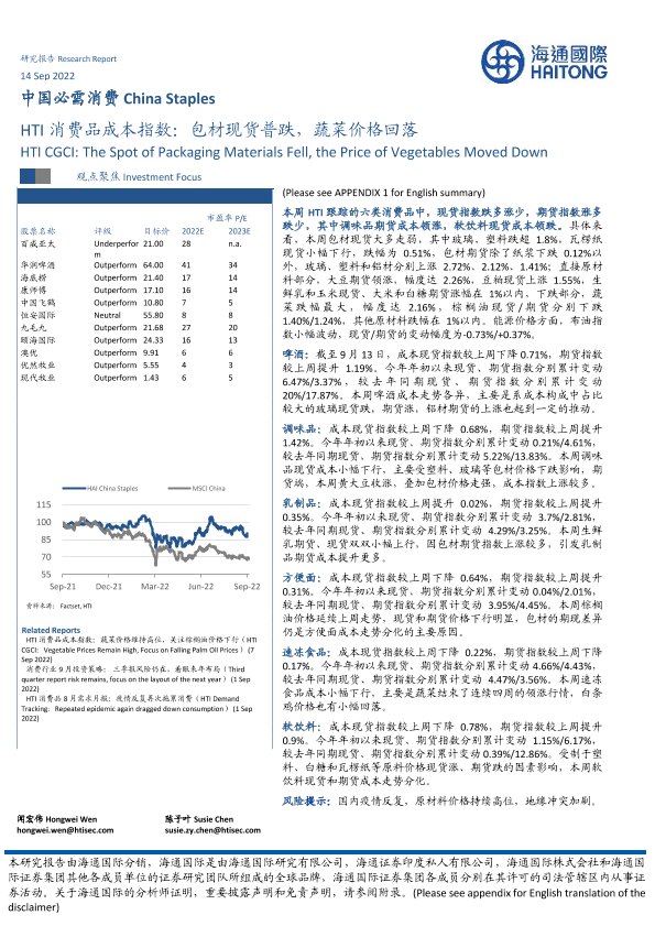 【海通国际】【20220914】HTI消费品成本指数:包材现货普跌,蔬菜价格回落-16页