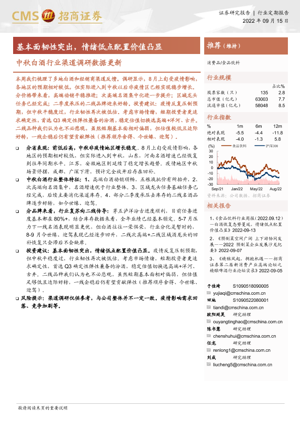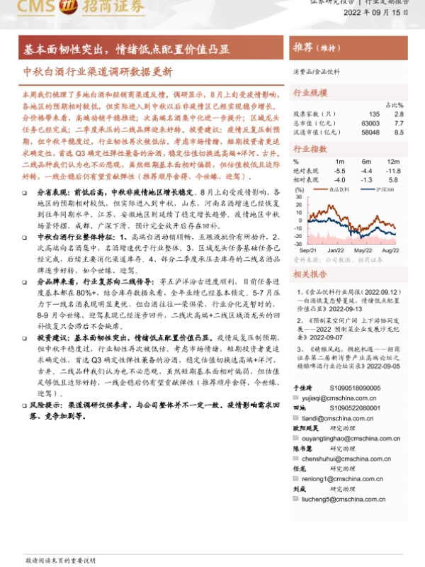 【海通证券】【20220915】中秋白酒行业渠道调研数据更新:基本面韧性突出,情绪低点配置价值凸显-10页
