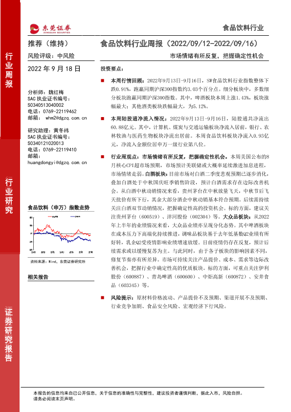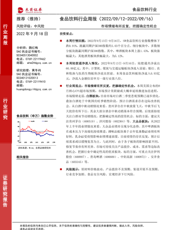 【东莞证券】【20220918】食品饮料行业周报:市场情绪有所反复,把握确定性机会-14页